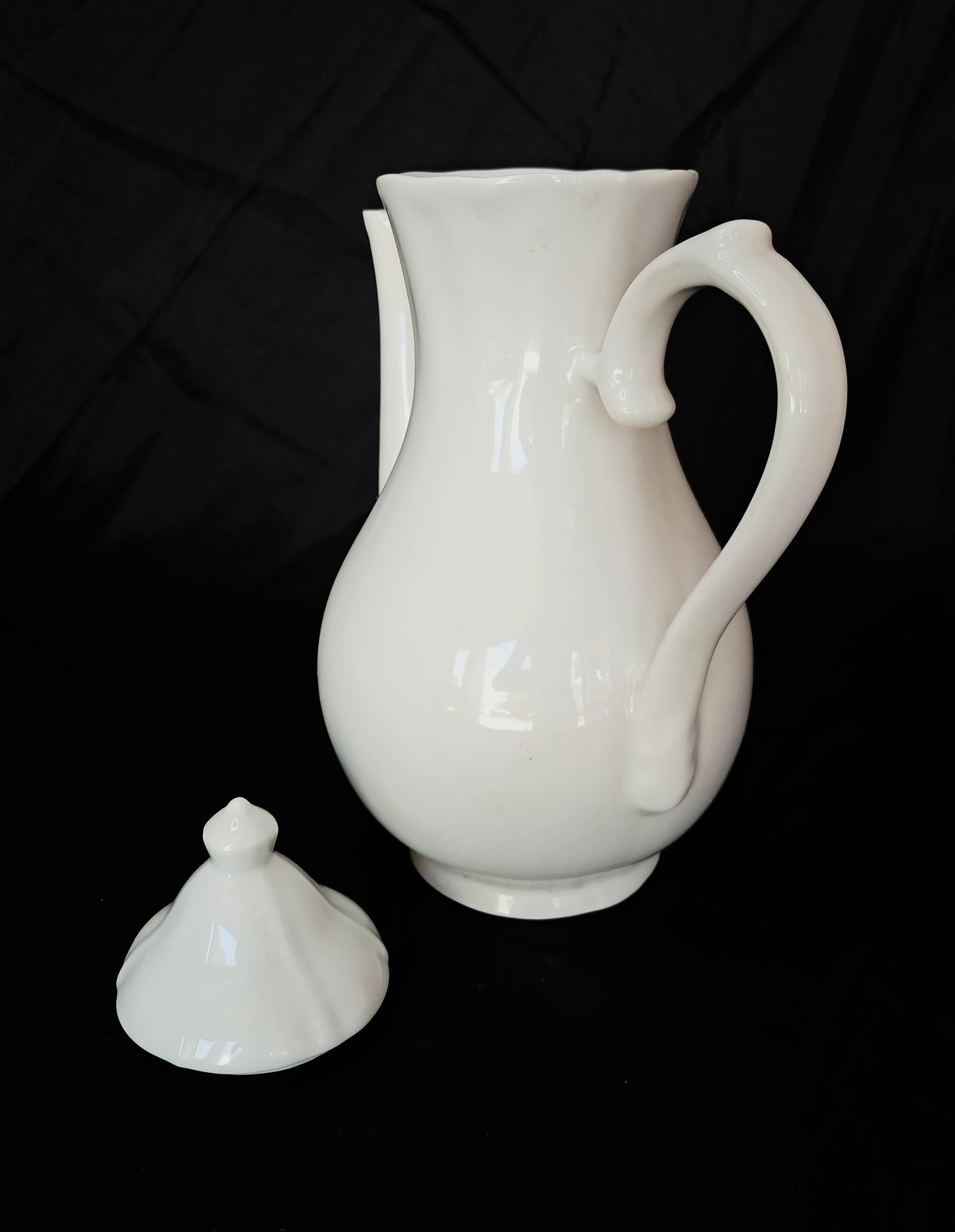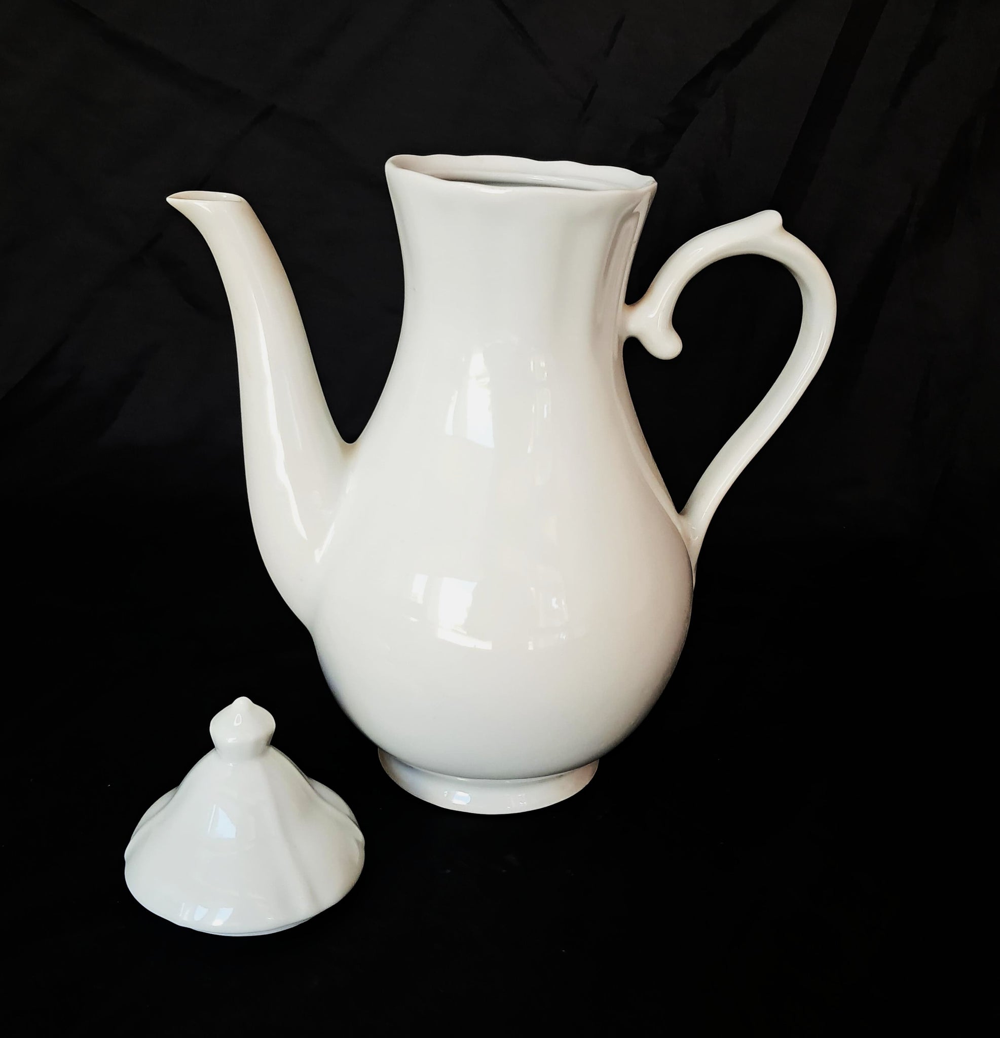 - Cafeteira em porcelana de alta resistência, com acabamento branco brilhante.