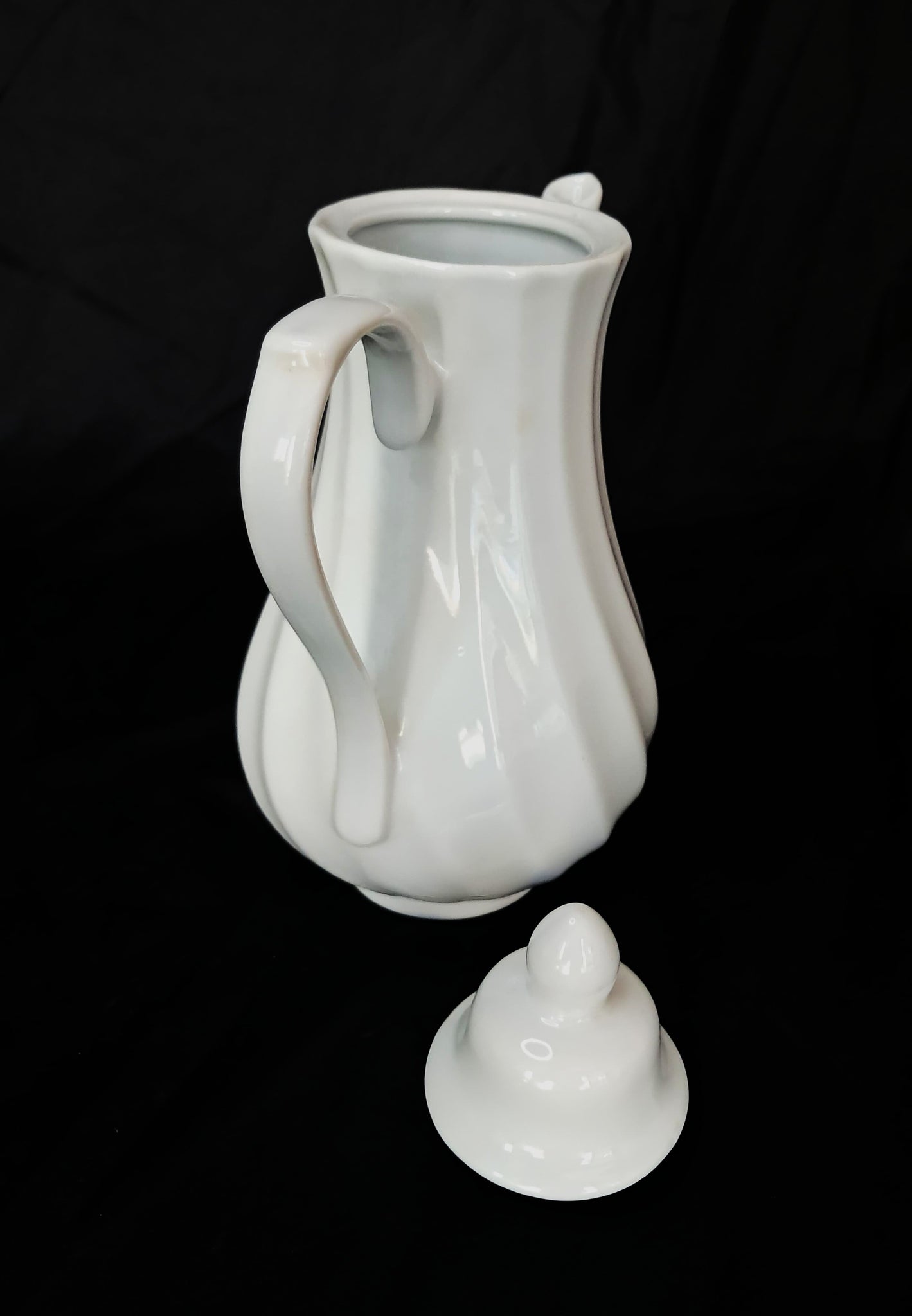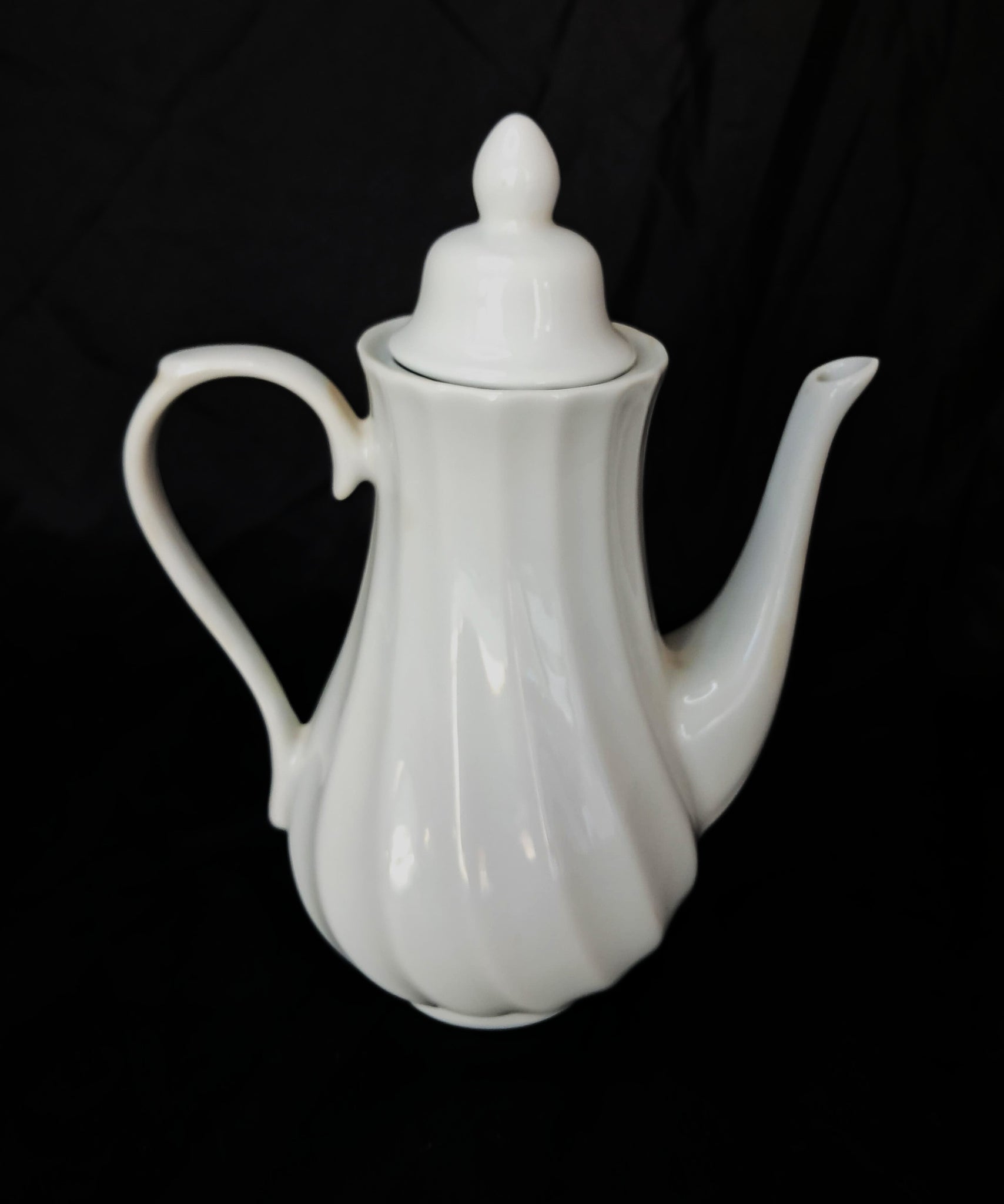 - Cafeteira em porcelana de alta resistência, com acabamento branco brilhante.