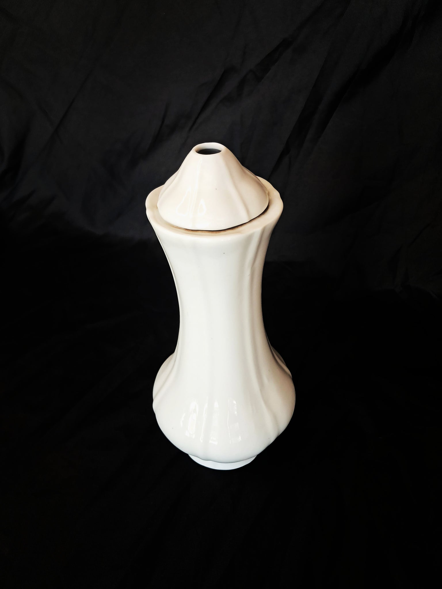 - Base de candeeiro em porcelana vitrificada, de linhas harmoniosas e acabamento branco brilhante.