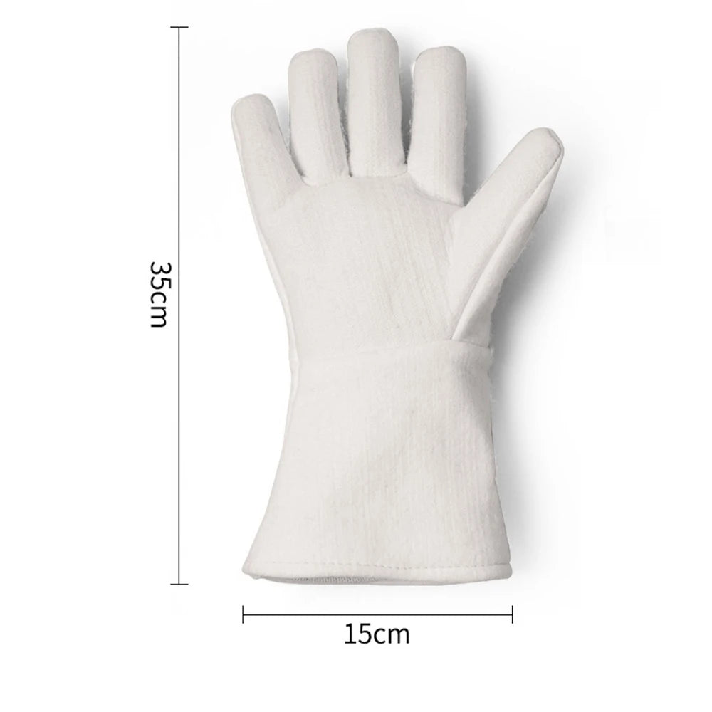 Material resistente ao calor: geralmente feito em algodão tratado, couro, aramida (como Kevlar) ou tecidos com revestimento refratário.